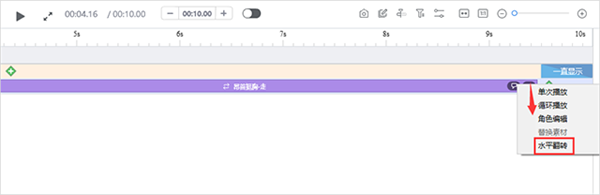 还是用上面的人物来举例,在刚刚我们已经添加好的人物动作滑块后面再添加一个走路的动作滑块,点击动作滑块后面的图标【...】中的【水平翻转】让人物转身,然后增加移动的强调效果,跟上面的操作步骤一样。