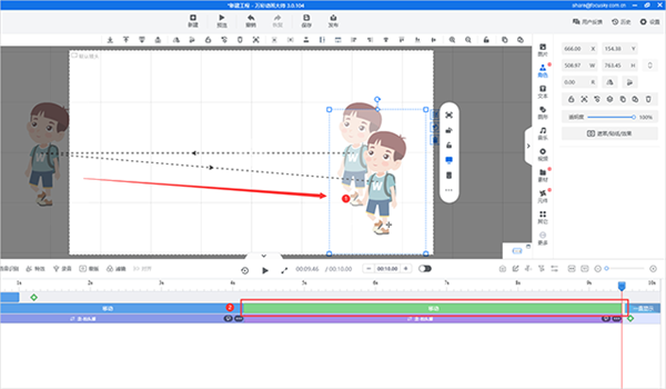 把人物移动到镜头外,然后把移动滑块拉到与人物的动作滑块对齐,然后点击预览效果即可。