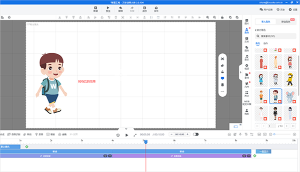 6. 功能强大的时间轴和丰富的元素内容,轻松操控了整个动画视频,随时预览视频效果。